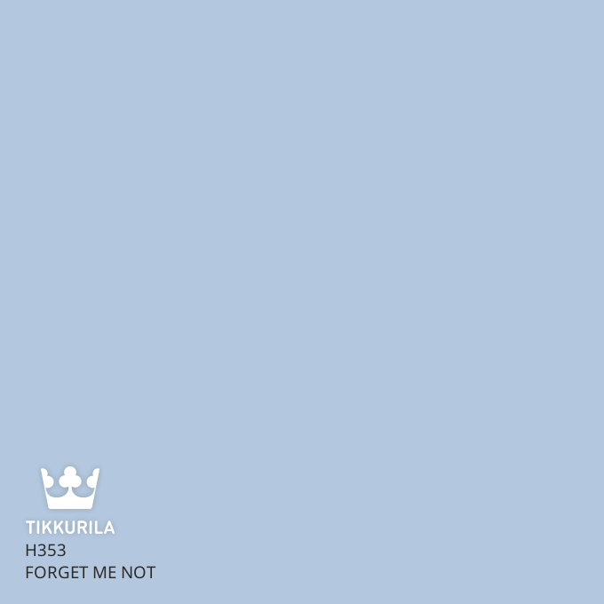 Mielas miško pakrašty augančių neužmirštuolių žiedų melsvumas. Šviesus mėlis asocijuojasi su ką tik išskalbtų skalbinių gaiva ir švelnumu. Šia spalva nudažyti maži ploteliai taps interjero akcentais, o dideli paviršiai, pvz., miegamojo sienos, veiks raminamai.