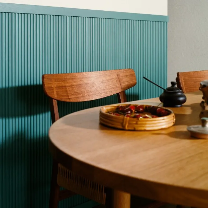 Švelnus vilnijančio šilko švytėjimas. Ši nerūpestingai nuteikianti melsvai žalsva spalva tinka tiek akcentinei sienai, tiek smulkesnėms interjero detalėms, pvz., sienų apvadams ir durų rėmams.
