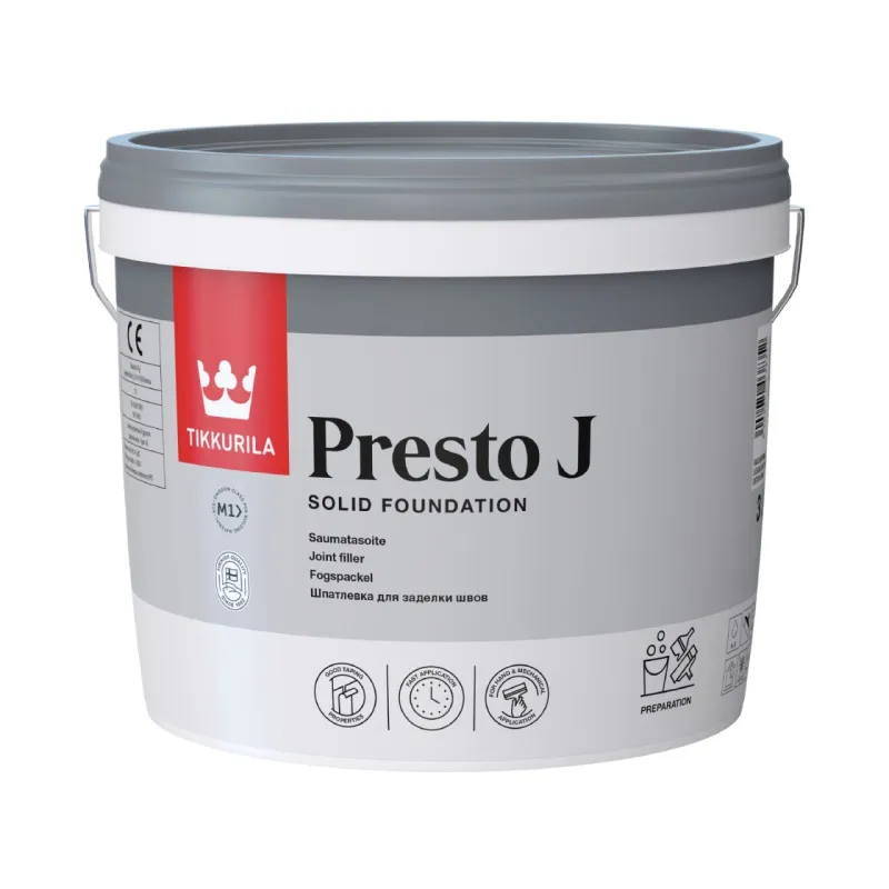 Siūlių glaistas „Presto J“ minimaliai susitraukia ir puikiai sukimba su dengiamu paviršiumi. Gerai tinka gipso-kartono plokščių siūlėms užpildyti ir siūlių sutvirtinimo juostoms tvirtinti.