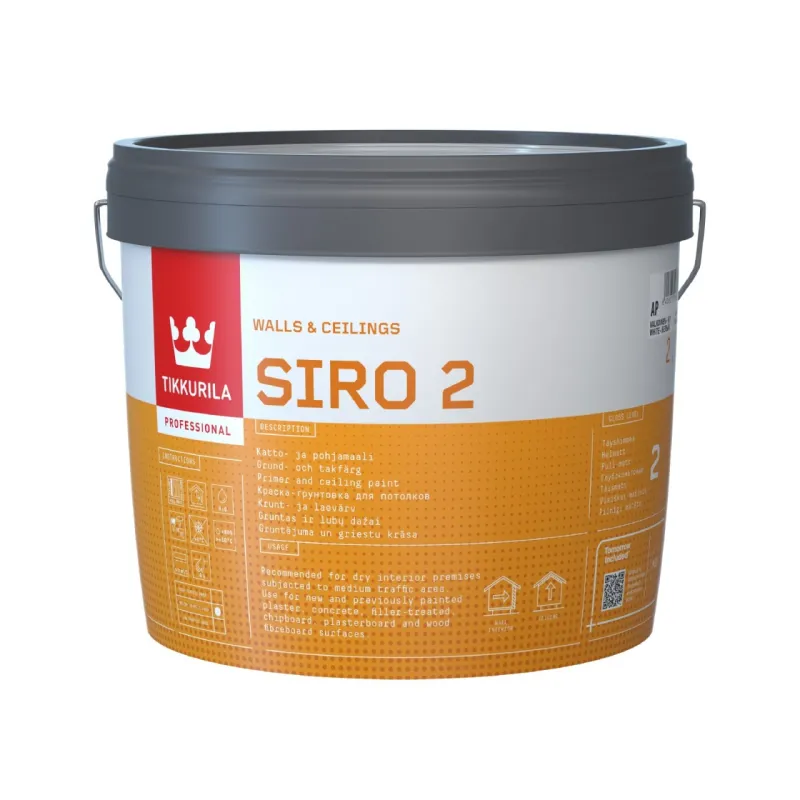 Siro 2 tinka dažyti betono, tinko, glaisto, gipso kartono plokščių ir medžio plaušo plokščių paviršius pagal instrukcijas. Tepkite voleliu, teptuku arba purkštuvu.