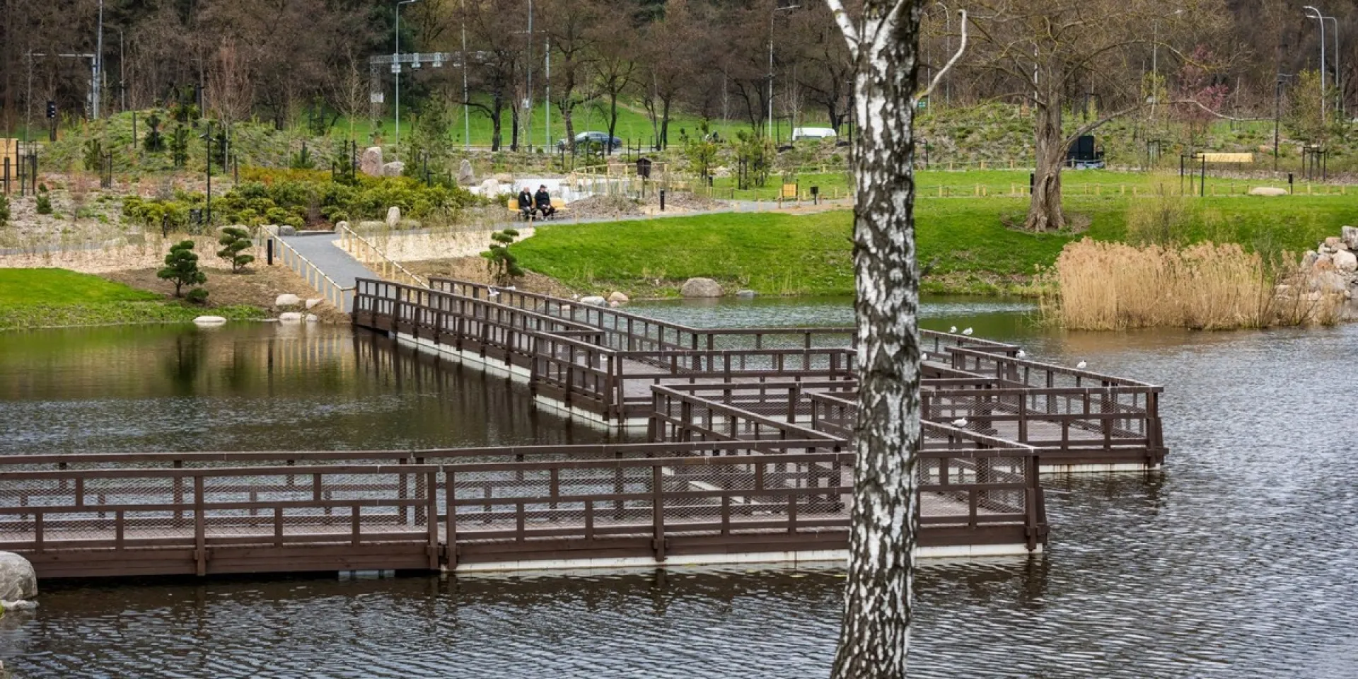 Penkių hektarų ploto Japoniško sodo centre tyvuliuojantį tvenkinį galima apžiūrėti ne tik iš tolo, bet ir vaikštant pontoniniu tiltu. Tilteliai veda ir pro krioklį, žuvų baseinus, sausąsias upes bei kaskadas.