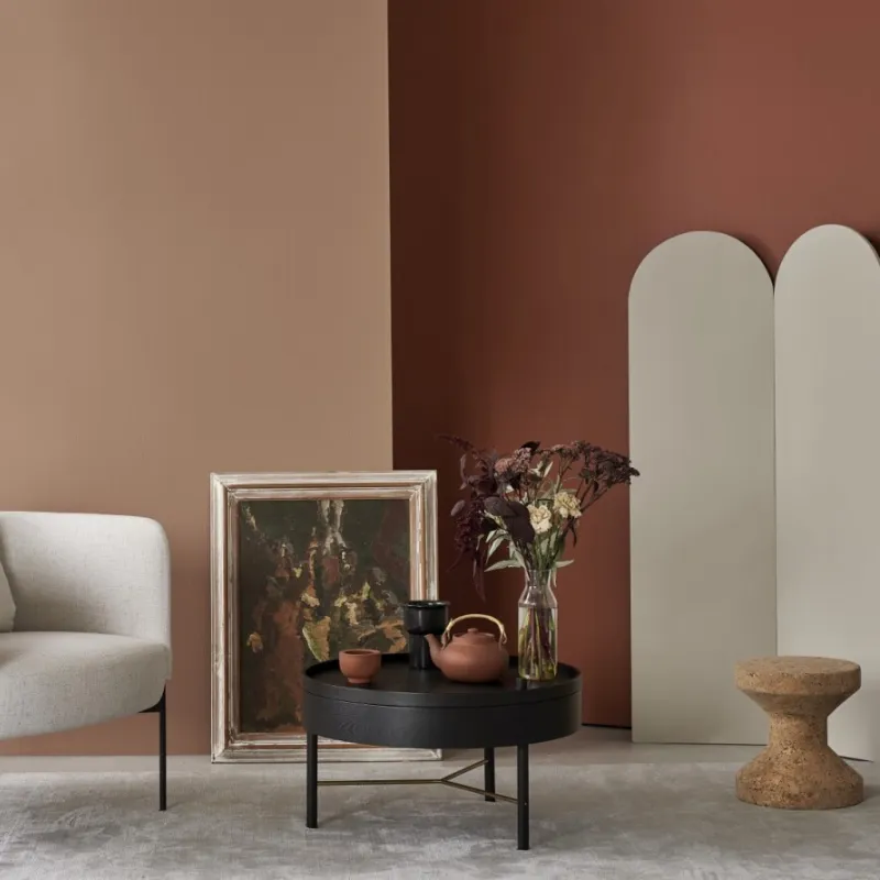 Elegantiško septintojo ir aštuntojo praėjusio amžiaus dešimtmečio namų interjero žavesys. Švelni nostalgiška ir kartu šiuolaikiška terakotos spalva žaviai sujungia skirtingų epochų elementus. „Tikkurila“ šią spalvą paskelbė 2018 metų spalva.